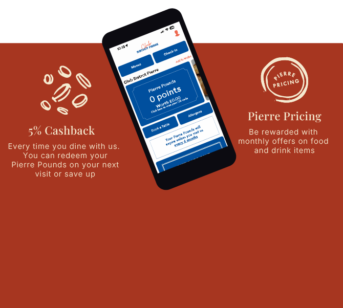 Love Bistrot Pierre? Sign up today to our loyalty scheme and start earning.